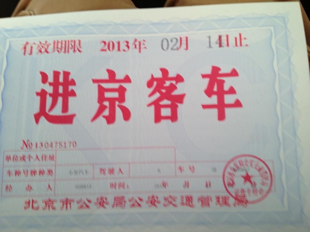 北京市登録でない車両においては以下のような